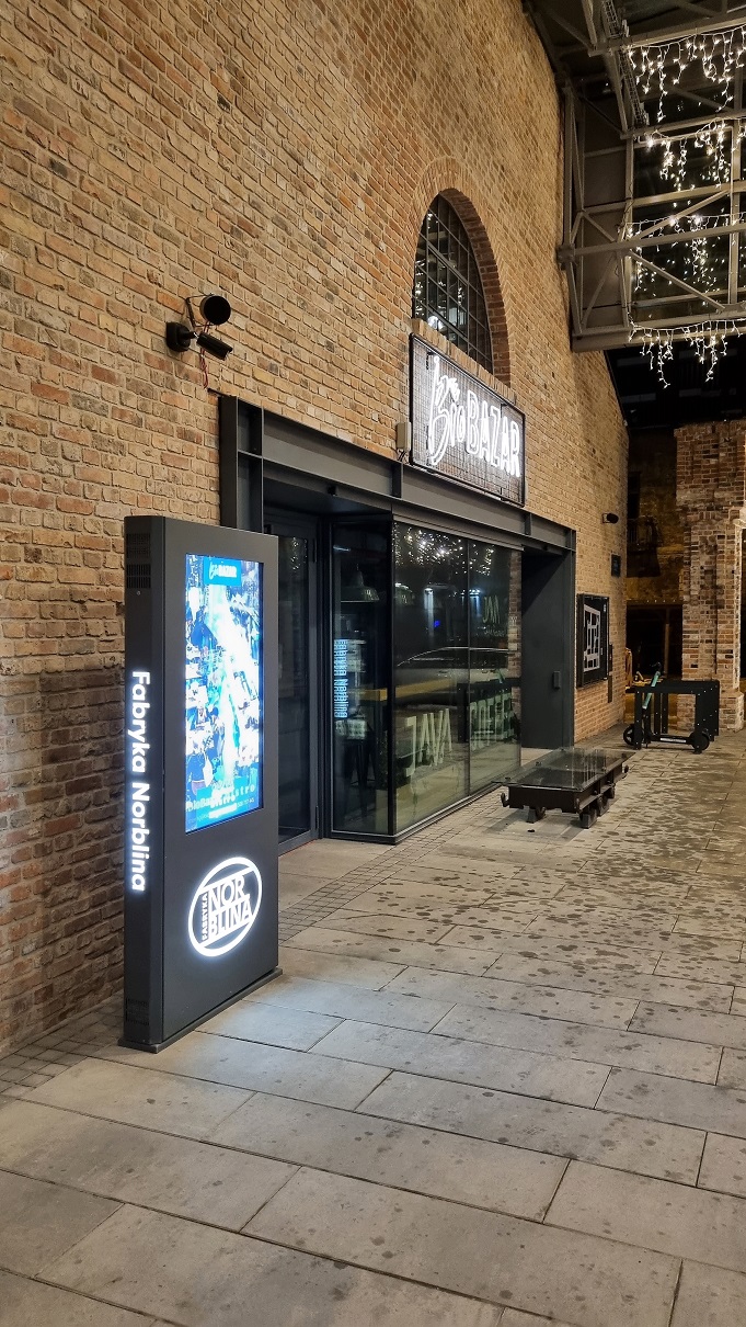 Nasza rola nie ograniczała się do dostarczenia urządzeń. Jako integrator systemów digital signage odpowiadaliśmy za pełne dopasowanie rozwiązań do wymagającej przestrzeni Fabryki Norblina. Każdy kiosk, każdy monitor czy videowall miał być nie tylko funkcjonalny, ale także spójny estetycznie z otoczeniem.